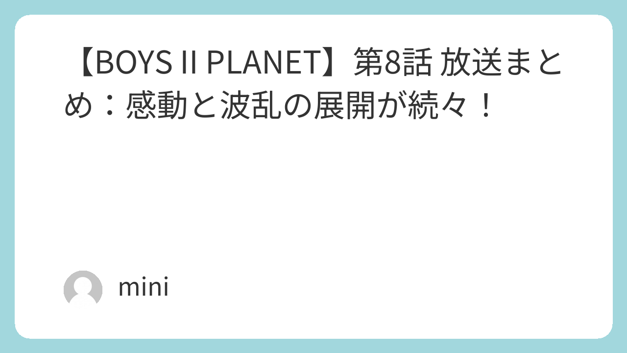 2025年9月4日(木)21:20~に日韓同時・国内独占無料放送された、グローバルK-POPオーディション番組『BOYS II PLANET』(通称:ボイプラ2)の第8話。この回では、熾烈なサバイバルがさらに加速し、視聴者を魅了するパフォーマンスとドラマチックな瞬間が続出しました。本記事では、Xの投稿や関連情報を基に、第8話のハイライトをまとめます!