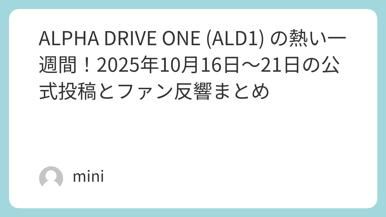 こんにちは、皆さん!私はK-Popの大ファンで、特にALPHA DRIVE ONE (ALD1) に心を奪われています。Boys II Planetから生まれたこの8人組グループ、Junseo、Arno、Leo、Geonwoo、Sangwon、Xinlong、Anxin、Sanghyeonのメンバーたちが、デビュー前にすでに世界を魅了しています。2025年10月16日から21日までのこの期間は、公式SNSの投稿が続々とアップされ、ファンたちの反響が爆発的に広がりました。私自身、この一週間を追いかけるだけで胸が熱くなり、毎日のようにX(旧Twitter)やInstagramをチェックしていました。デビューを待つ日々がこんなにワクワクするなんて、ALD1の魅力は本当にすごいと思います。