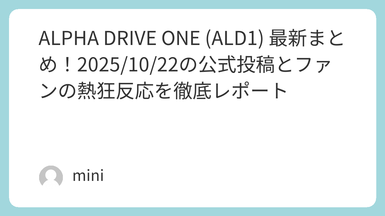 皆さんもALD1をチェックしてみてください。もしこの記事が役立ったら、シェアやコメントお願いします!ALD1の未来を一緒に応援しましょう。ALPHA DRIVE ONE, LET’S GO!