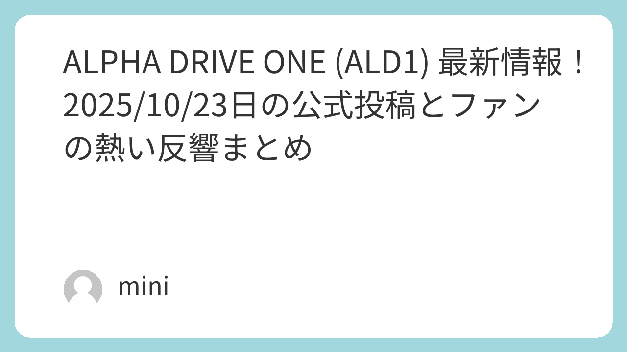 ALPHA DRIVE ONE (ALD1) 最新情報!2025/10/23日の公式投稿とファンの熱い反響まとめ