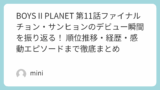 順位発表の瞬間、サンウォンが1位を呼ばれ、興奮しながら日本語で「Arigatou! 皆さんのおかげです!」と挨拶したシーン。韓国人なのに流暢な日本語が、日本ファンの心を直撃。放送中の投稿が急増しました。