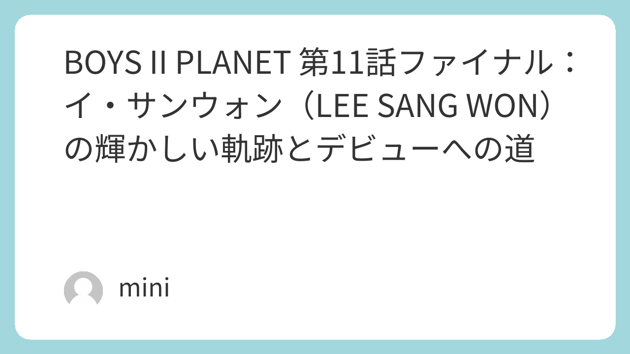 この番組を通じて、彼の成長と努力に触れ、私自身も「諦めない心」を学んだ気がします。BOYS II PLANETファン必見の、イ・サンウォンの順位推移、投票数、出身、趣味、経歴を正確に振り返りながら、皆さんと一緒に感動を共有しましょう。